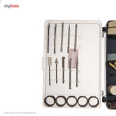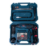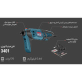 این محصول، یک فرز مینیاتوری به همراه مجموعهی کاملی از ابزار و وسایلی است که برای انجام کارهای مختلف، مورداستفاده قرار میگیرد. این دستگاه که با عنوان 3401 معرفیشده، توسط شرکت «رونیکس» (Ronix) تولید میشود. این دستگاه به یک موتور، با قدرت مناسب مجهز است که میتوان سرعت گردش آن را بهصورت دیجیتالی تنظیم کنید. 3 کولت برای کار در شرایط مختلف برای این محصول در نظر گرفتهشده است. علاوه بر این تعداد زیادی از انواع لوازم جانبی به همراه این ابزار عرضه میشود. فرز مینیاتوری مدل 3401 یک دستگاه چندکاره بهحساب میآید. از این دستگاه غالبا برای انجام کارهایی با دقت و ظرافت بالا استفاده میشود. ازجمله این موارد میتوان به برشهای دقیق فلزات و چوب، دادن طرحهای مختلف در چوب، انواع سوهانکاری و بسیاری موارد دیگر اشاره کرد. این محصول موتوری با قدرت 170 وات دارد. حداکثر سرعت گردش موتور به 35000 دوربردقیقه میرسد. سرعت گردش موتور دستگاه را میتوان به کمک بخش دیجیتالی انتهای دسته بین 8000 تا 35000 دوربردقیقه تنظیم کرد. با توجه به اینکه کاربرد این دستگاه در انجام کارهایی با ظرافت بالا است، میتوان با اتصال یکی از 3 گونهی کولت (سری دستگاه) به محصول، نیاز به در دست گرفتن دستگاه را برطرف کرد. در کنار این محصول 122 عدد لوازم جانبی هم وجود دارد. گونههای مختلف سنگ سنباده و برش، متههایی با قطر بسیار کم، صفحههای سنباده، دو نوع فرچه و انواع پایههای مخصوص دستگاه در بیت این 122 عدد لوازم جانبی دیده میشود. با استفاده از پایههای قرارگرفته در این مجموعه، میتوانید دستگاه را به چند حالت معلق، روی میز و عمودی استفاده کرد. در شغلهای مختلفی از فرزهای مینیاتوری استفاده میکنند. ازجملهی این مشاغل که در آن از این نوع فرز استفادهی بسیار زیادی میکنند، تولیدکنندگان دکورهای چوبی و فلزی هستند. شرکت رونیکس هم نمونههایی از این دستگاه را تولید کرده است. شاید کیفیت ساخت محصولات رونیکس، در حد برندهای خارجی نظیر بوش نباشد، اما با در نظر گرفتن قیمت و سطح کیفی مدل 3401، تهیهی این محصول مقرونبهصرفه به نظر میرسد. 3401 یکی از فرزهای مینیاتوری ساخت شرکت رونیکس است که با یک موتور 170 واتی کار میکند. 129 عدد انواع کولت، پایه و لوازم جانبی دیگر در کیف پلاستیکیای محصول قرارگرفته است.